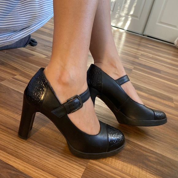 Geox Shoes Black Leather Mary Jane Heels Breathable By Geox Made In Italy Size Us Women 8 Poshmark